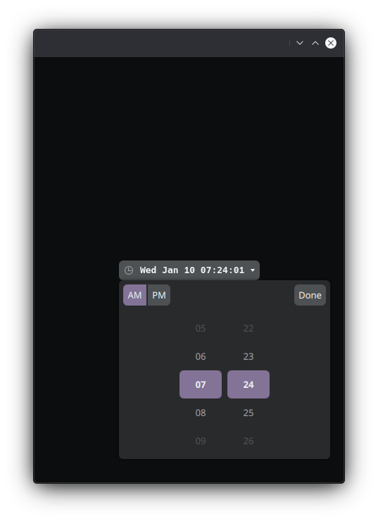 onTimePicked: (time) => console.log("Time Picked, ", time)